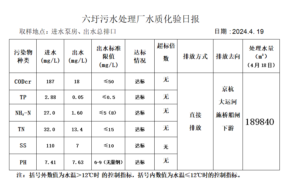 六圩污水处理厂水质化验日报(2024.4.19)