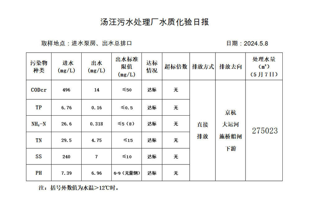 汤汪污水处理厂水质化验日报(2024.5.8)