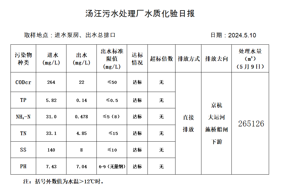 汤汪污水处理厂水质化验日报(2024.5.10)
