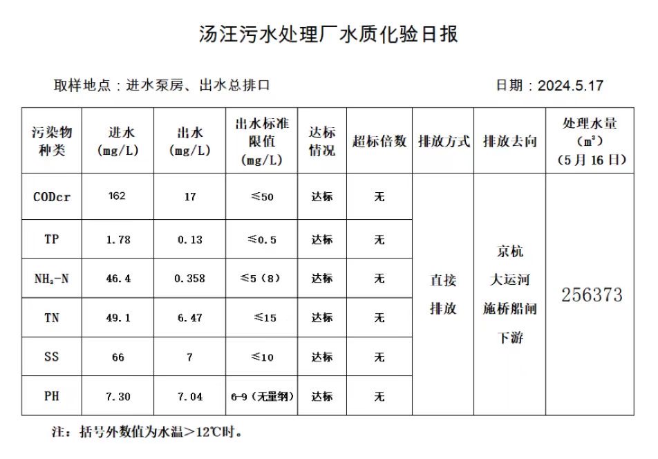 汤汪污水处理厂水质化验日报(2024.5.17)