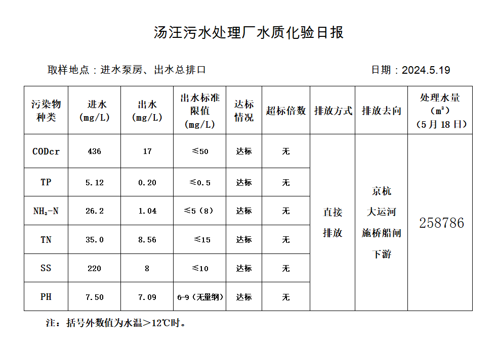 汤汪污水处理厂水质化验日报(2024.5.19)