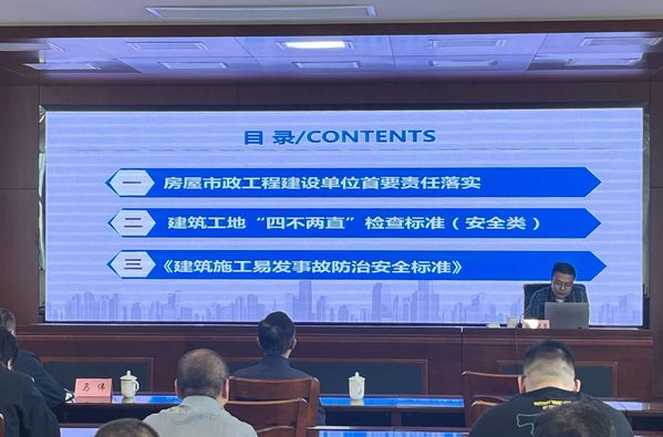 欧阳晓安从房屋市政工程建设单位首要责任落实、建筑工地“四不两直”检查标准(安全类)、《建筑施工易发事故防治安全标准》三个方面展开讲解。用通俗易懂的语言分析法律法规、行业标准;围绕哪些是隐患,应该怎么查;按规范应该怎么整改,会导致什么事故,受什么处罚。通过具体事例,以案说法,给大家开展了一堂生动的安全教育课。本次培训要求全体参训人员,一是提高政治站位。充分认清安全生产工作的重要性,牢固树立安全生产发展理念,坚决守住安全生产红线,全力保障公司六圩扩建项目顺利建成通水。二是强化责任担当。严格贯彻落实安全生产企业主体责任,做到层层有人抓,环环有人管,做到安全生产工作责任全覆盖、管理无真空、工作无死角,真正当好第一责任人。三是落实关键举措。各参建单位要开展事故隐患自查自纠,学以致用,举一反三,将学习成果转化为工作成果,从源头上管控风险、消除隐患,防止出现风险演变、隐患升级导致事故发生。