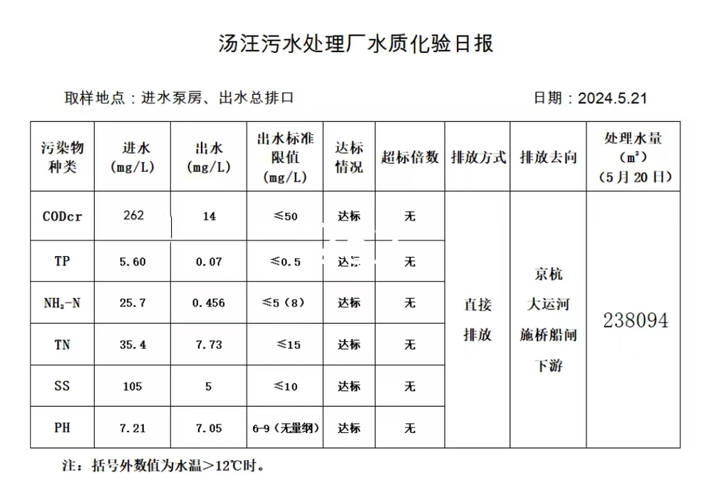 汤汪污水处理厂水质化验日报(2024.5.21)