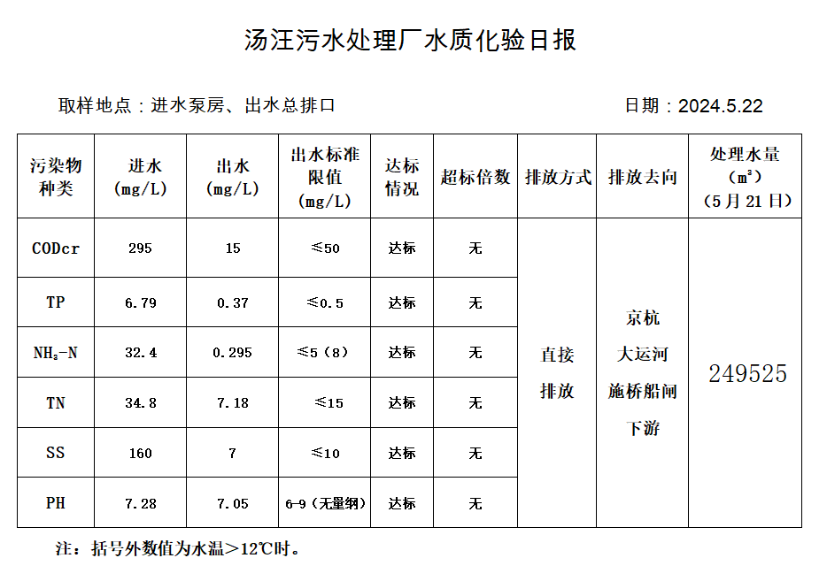 汤汪污水处理厂水质化验日报(2024.5.22)