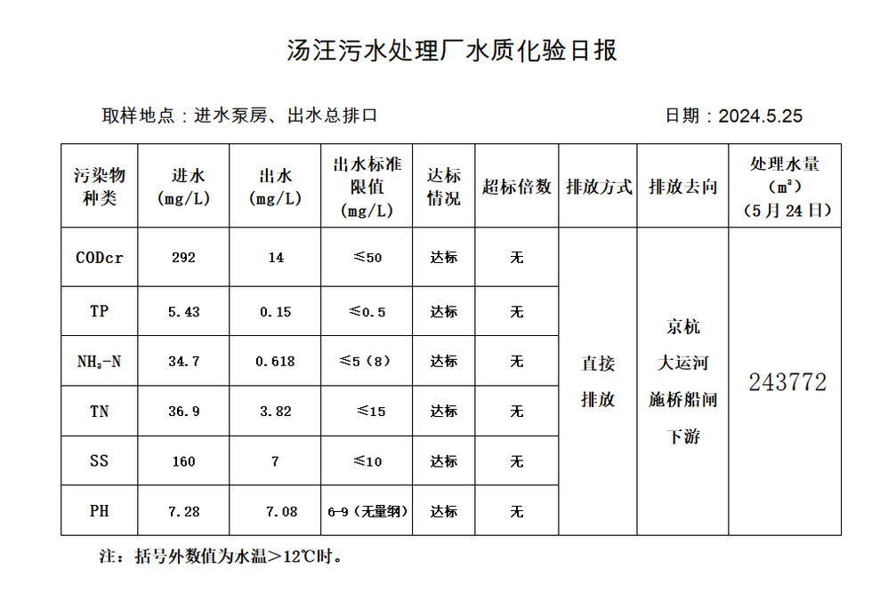 汤汪污水处理厂水质化验日报(2024.5.25)