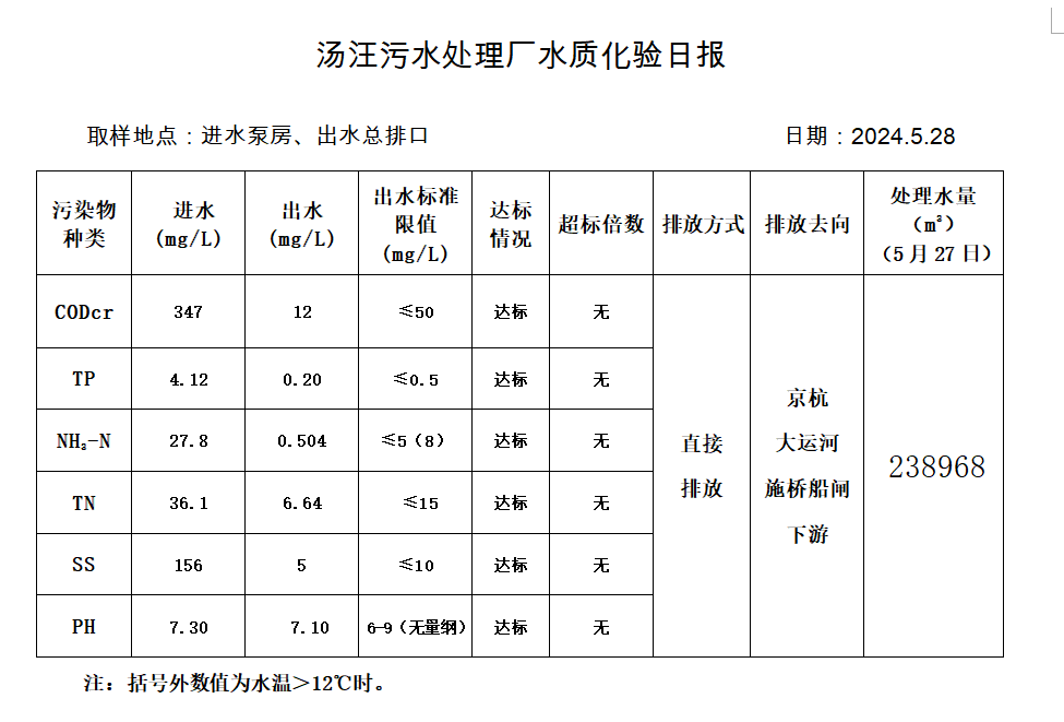 汤汪污水处理厂水质化验日报(2024.5.28)