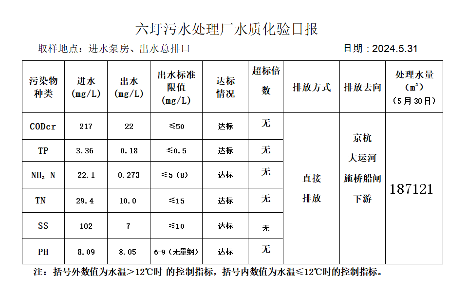 六圩污水处理厂水质化验日报(2024.5.31)