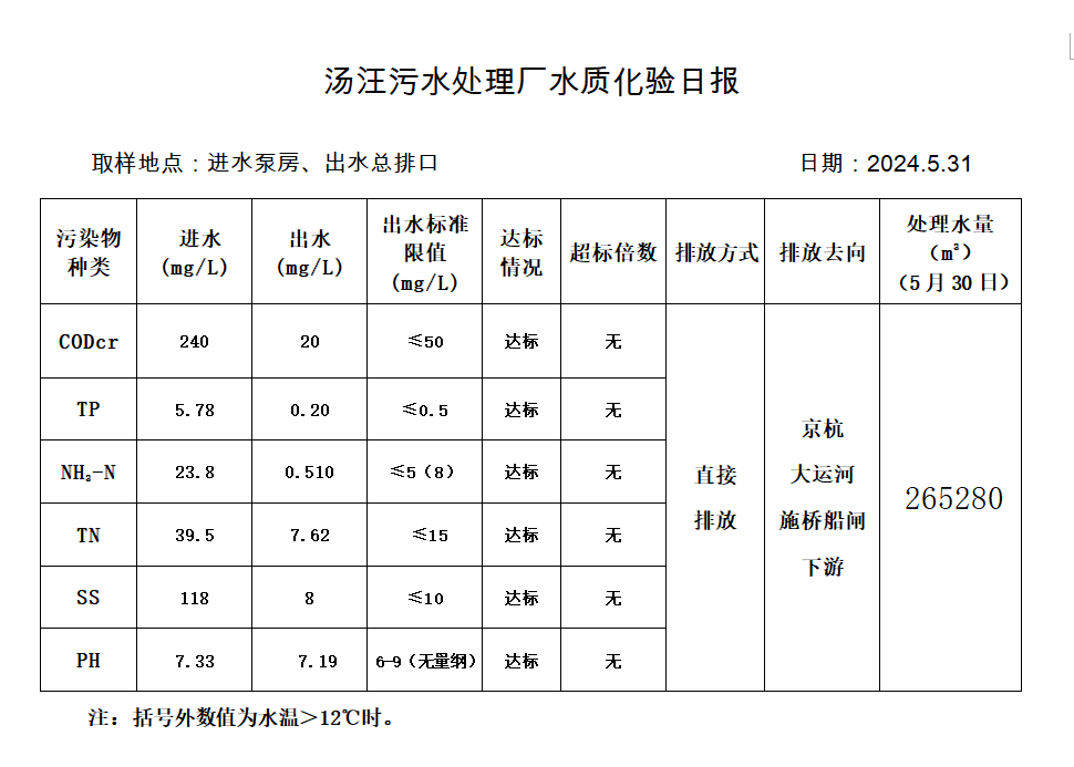 汤汪污水处理厂水质化验日报(2024.5.31)