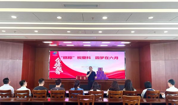 活动现场,公司领导为今年参加中高考的职工子女们送上祝福,并了解考生们的学习情况、迎考状态,鼓励孩子们放松心态,以良好的精神面貌迎接大考。同时希望职工们能够调整好心态,科学合理安排工作,做好子女备考的后勤保障工作。正值端午佳节来临之际,公司给大家送上寓意“高中”的礼盒,祝福考生们“一举高粽”。