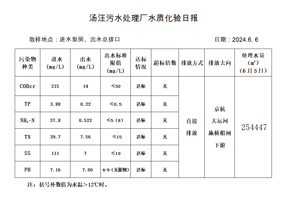 汤汪污水处理厂水质化验日报(2024.6.6)