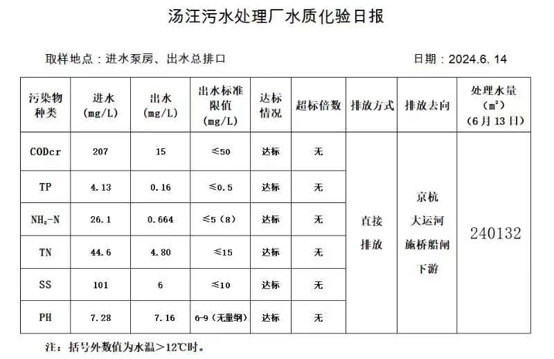 汤汪污水处理厂水质化验日报(2024.6.14)
