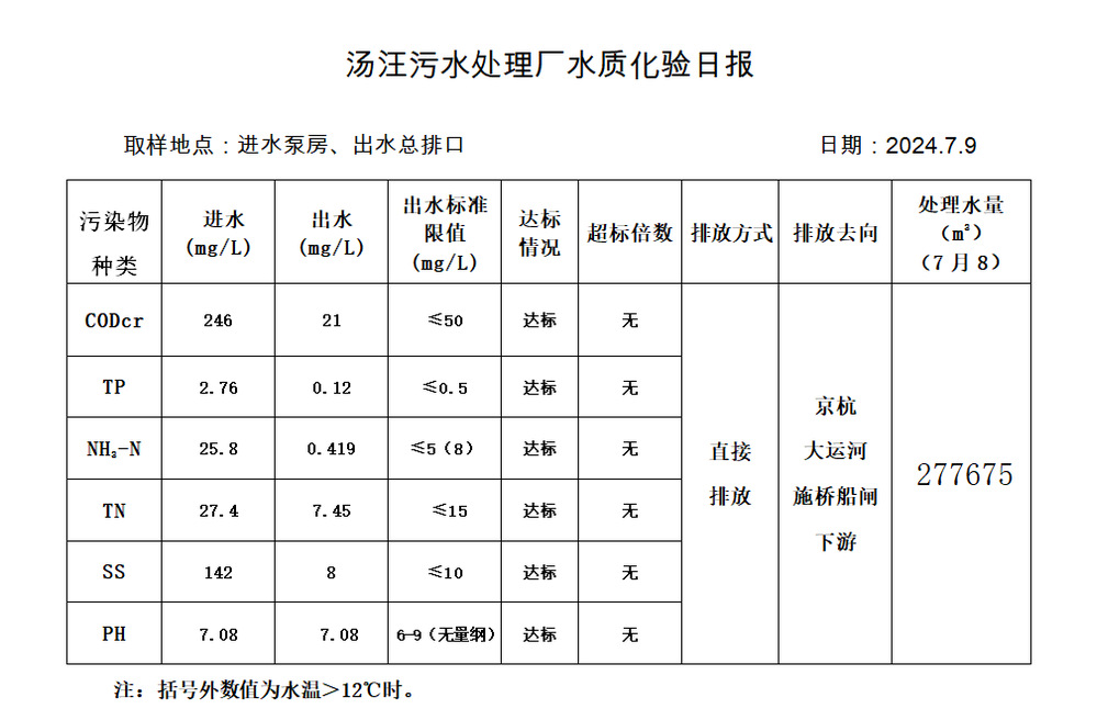 汤汪污水处理厂水质化验日报(2024.7.9)