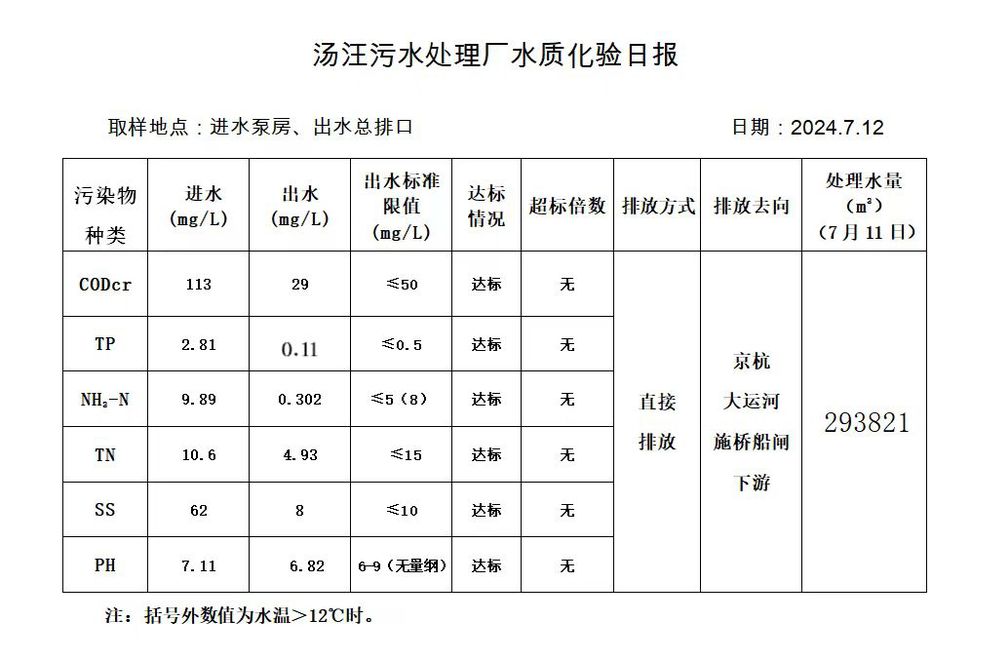 汤汪污水处理厂水质化验日报(2024.7.12)