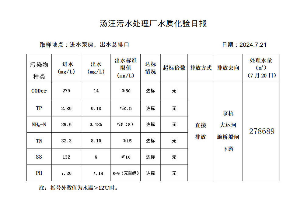 汤汪污水处理厂水质化验日报(2024.7.21)