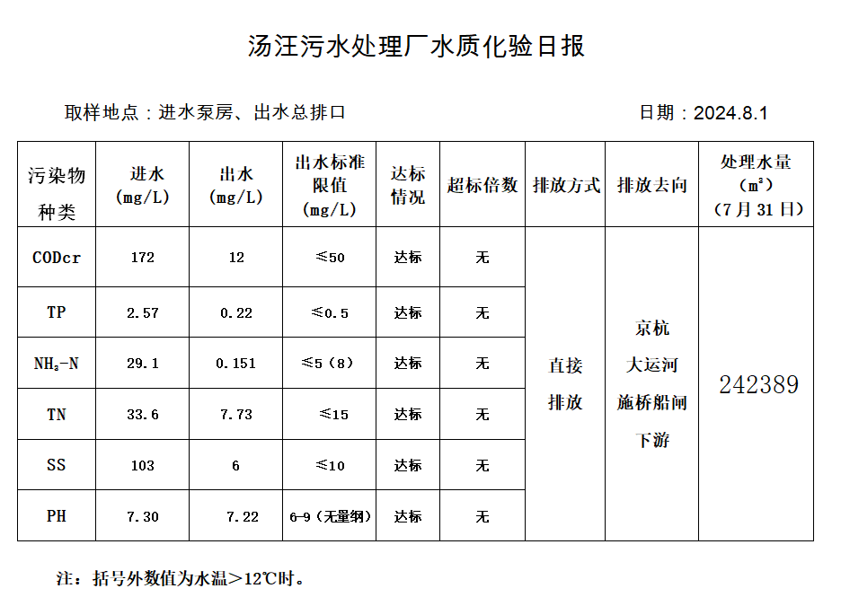 汤汪污水处理厂水质化验日报(2024.8.1)