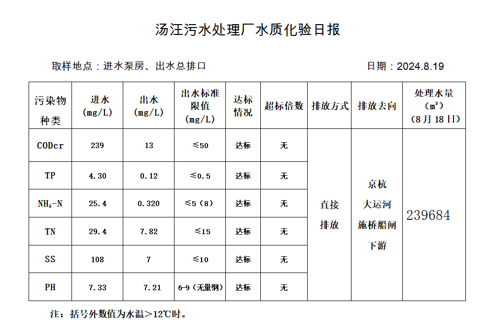 汤汪污水处理厂水质化验日报(2024.8.19)