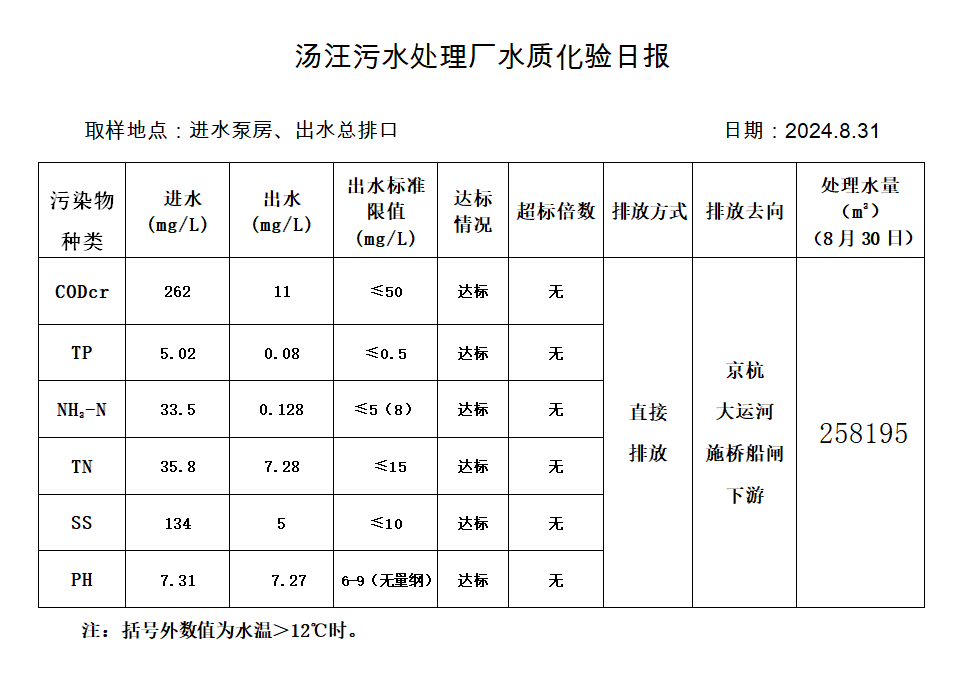 汤汪污水处理厂水质化验日报(2024.8.31)