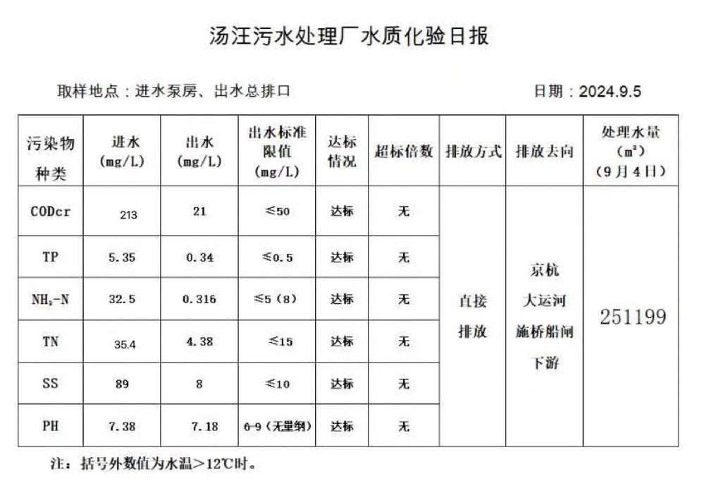 汤汪污水处理厂水质化验日报(2024.9.5)