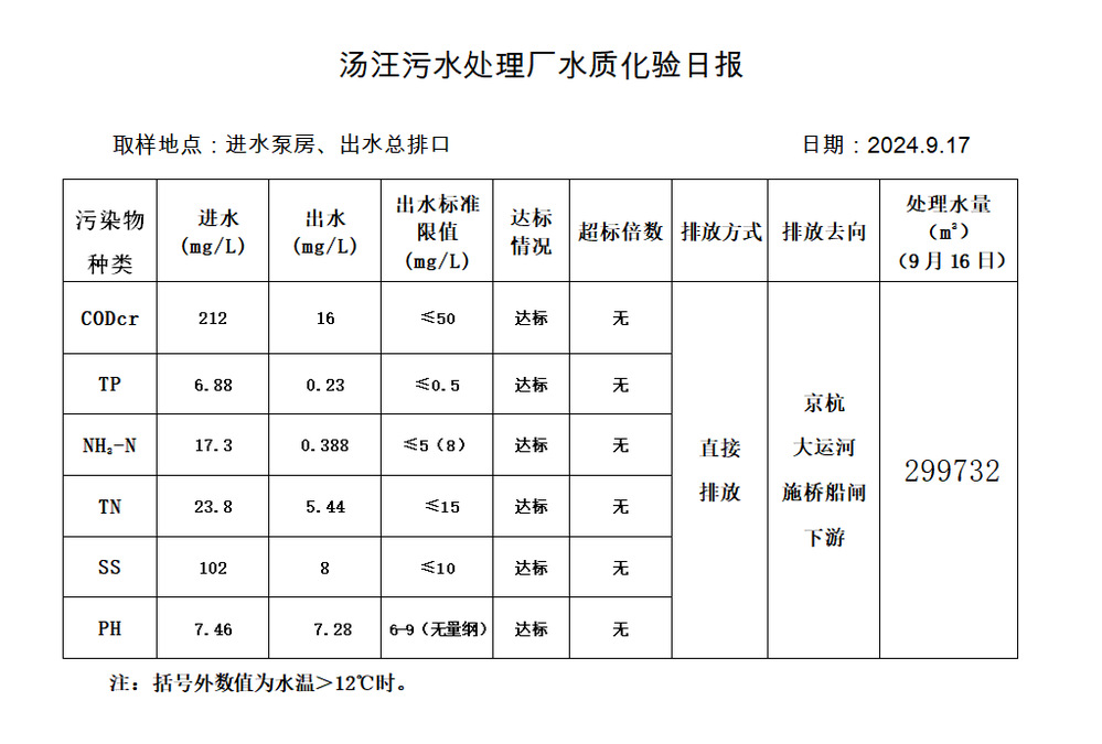 汤汪污水处理厂水质化验日报(2024.9.17)