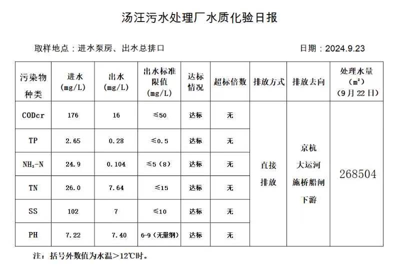 汤汪污水处理厂水质化验日报(2024.9.23)