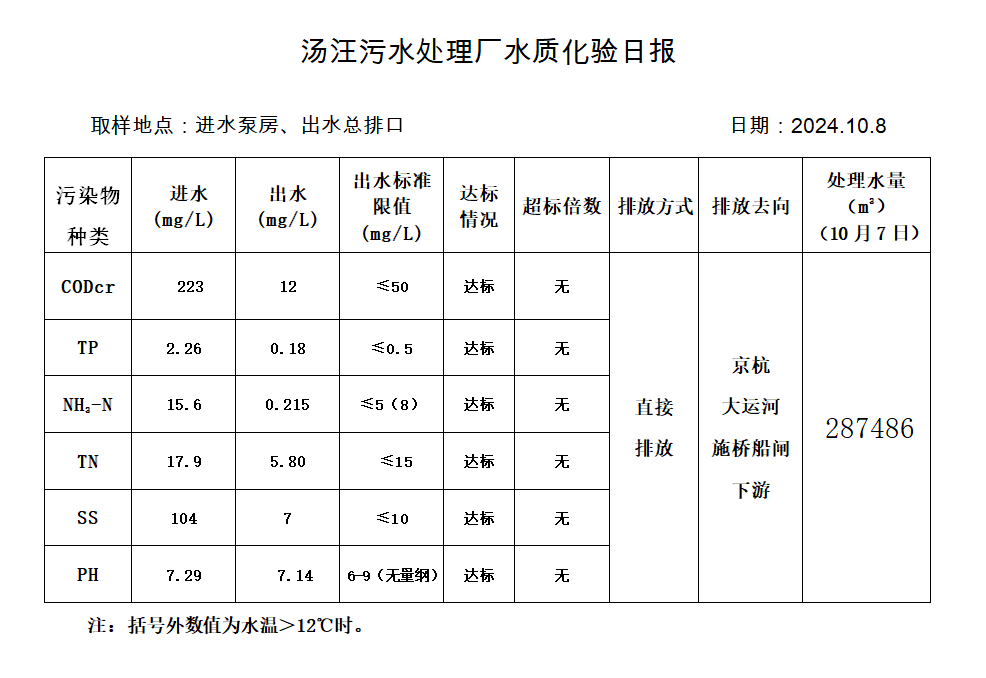 汤汪污水处理厂水质化验日报(2024.10.8)