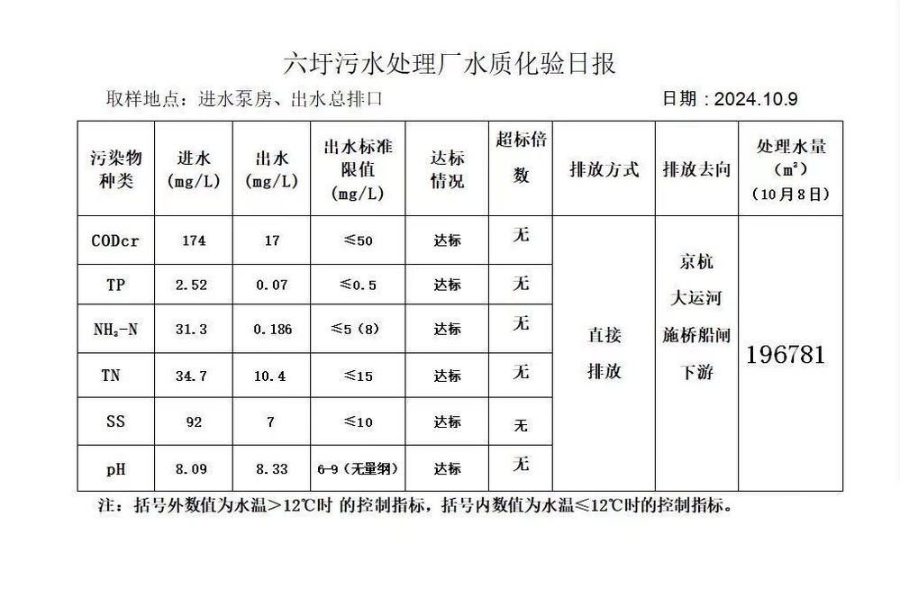 六圩污水处理厂水质化验日报(2024.10.9)