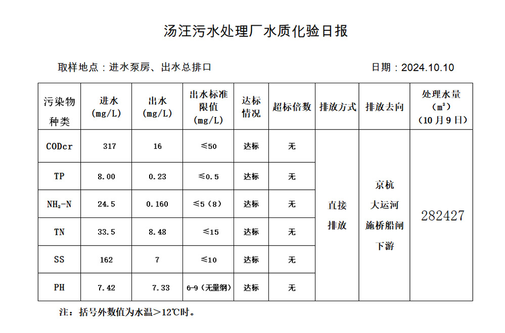 汤汪污水处理厂水质化验日报(2024.10.10)