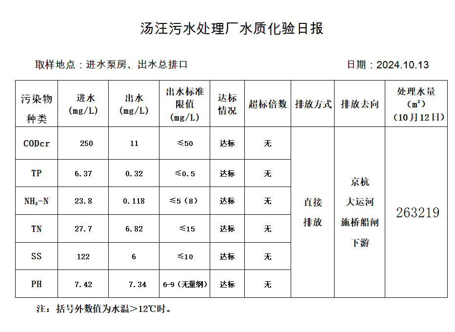 汤汪污水处理厂水质化验日报(2024.10.13)