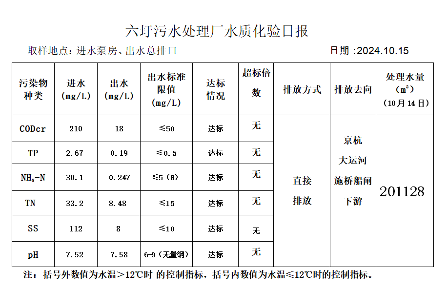 六圩污水处理厂水质化验日报(2024.10.15)