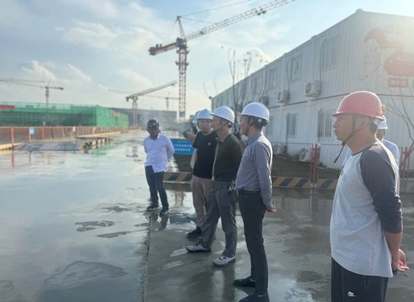 调研组一行首先来到洁源环境公司组织建设的六圩污水处理厂扩建工程项目施工现场,仔细听取了项目建设进度、质量管控、安全措施等相关情况汇报并与项目EPC联合体成员单位代表就项目建设相关重点、难点问题进行了现场交流。