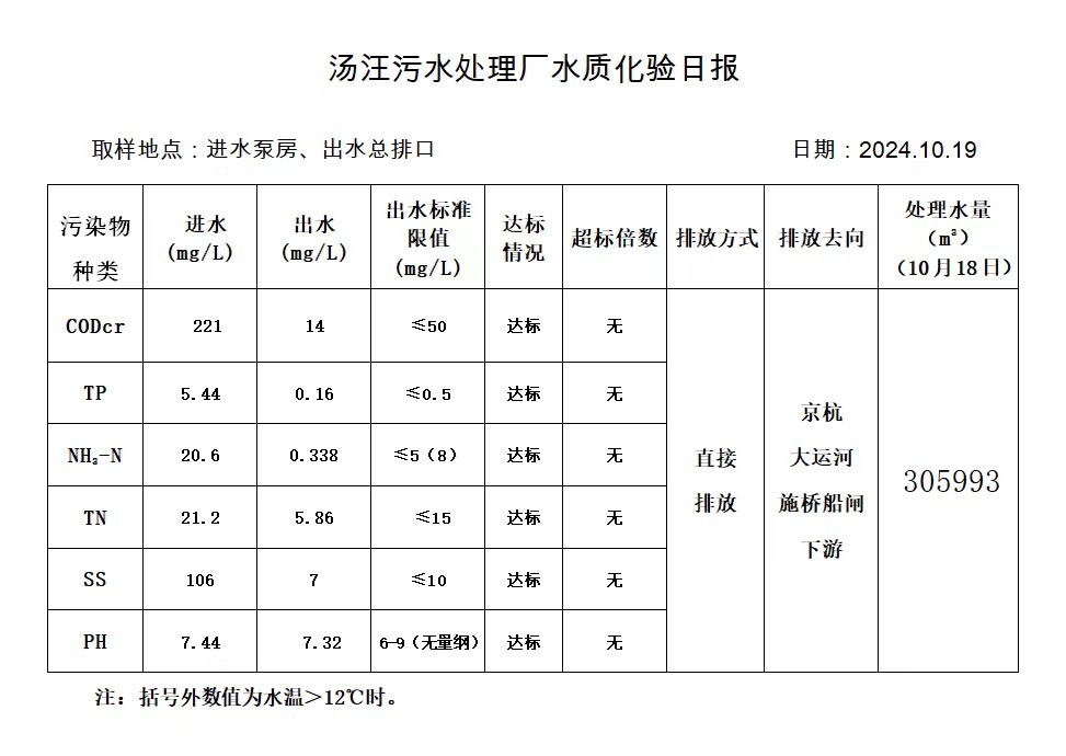汤汪污水处理厂水质化验日报(2024.10.19)