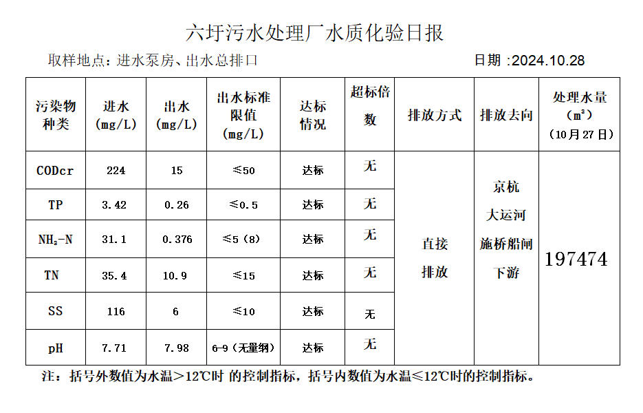 六圩污水处理厂水质化验日报(2024.10.28)