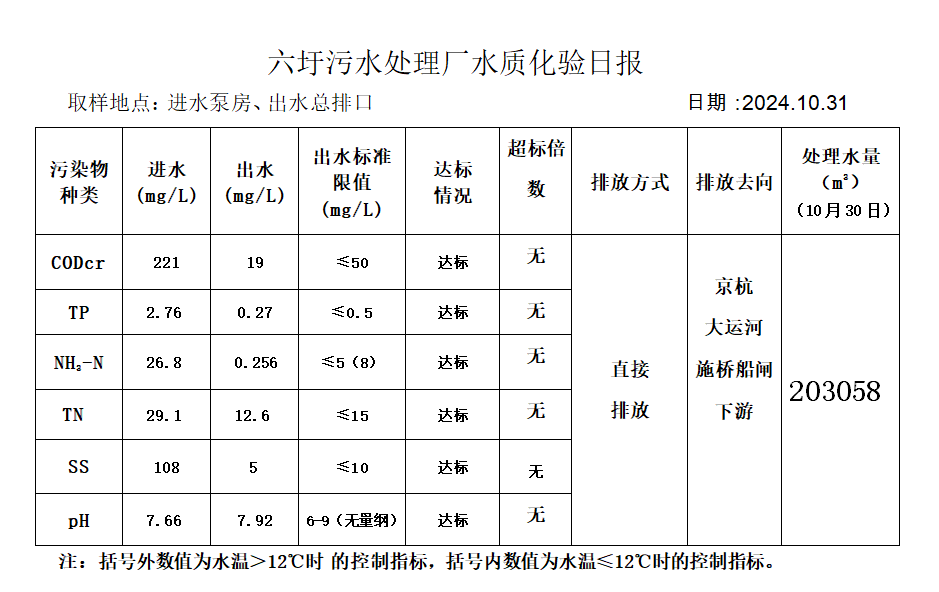 六圩污水处理厂水质化验日报(2024.10.31)