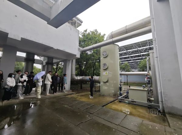 首先来到中控室,讲解员全面细致地介绍了六圩污水处理厂的概况及工艺流程,接着依次参观了进水泵房、水解池、生物池、鼓风机房、高密沉淀池等工艺生产环节。在参观每一段生产工艺时,讲解员均详细地向师生们介绍了水处理设备设施的具体用途,以及该段水处理工艺的原理和作用,让大家进一步了解污水处理厂的净水工艺。