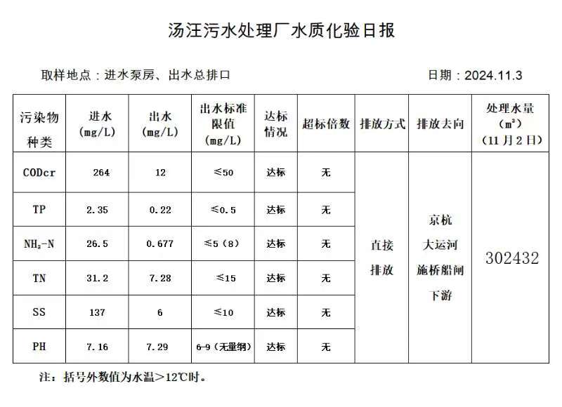 汤汪污水处理厂水质化验日报(2024.11.3)