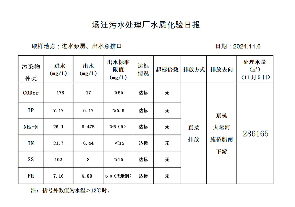 汤汪污水处理厂水质化验日报(2024.11.6)