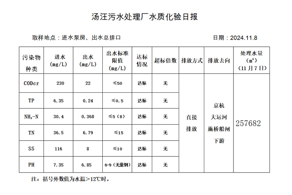 汤汪污水处理厂水质化验日报(2024.11.8)