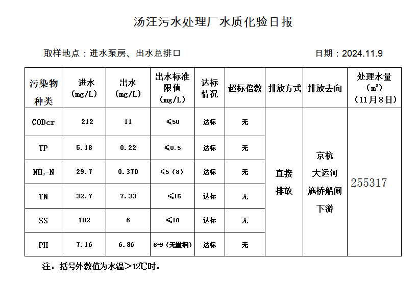 汤汪污水处理厂水质化验日报(2024.11.9)