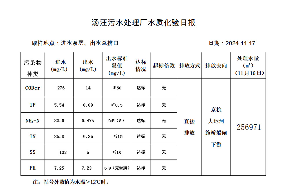 汤汪污水处理厂水质化验日报(2024.11.17)