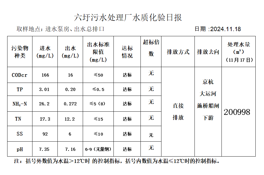 六圩污水处理厂水质化验日报(2024.11.18)