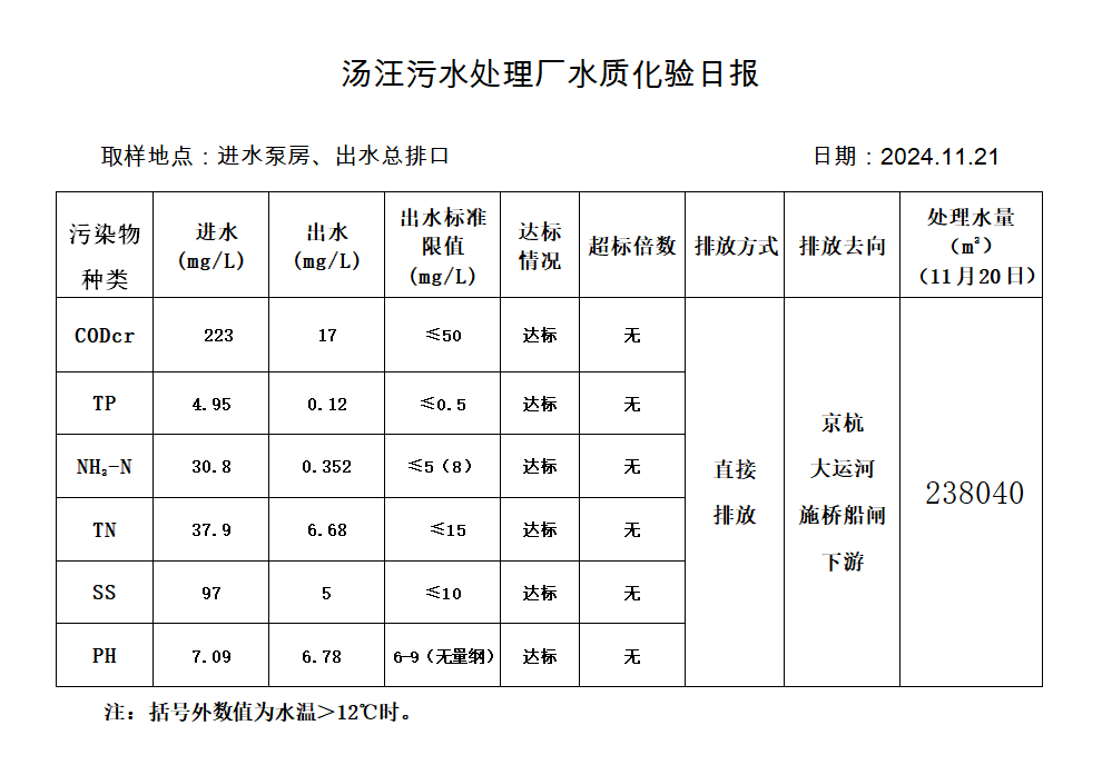 汤汪污水处理厂水质化验日报(2024.11.21)