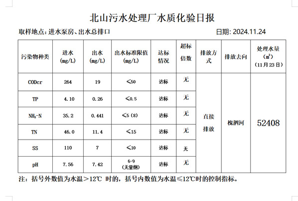 北山污水处理厂水质化验日报(2024.11.24)