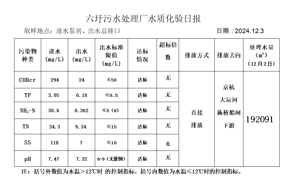 六圩污水处理厂水质化验日报(2024.12.3)