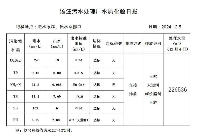 汤汪污水处理厂水质化验日报(2024.12.5)