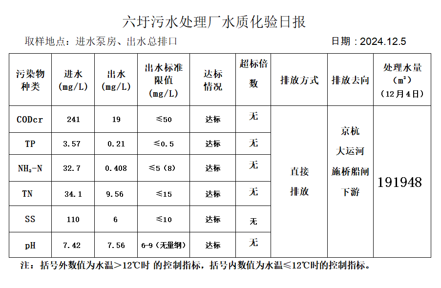 六圩污水处理厂水质化验日报(2024.12.5)