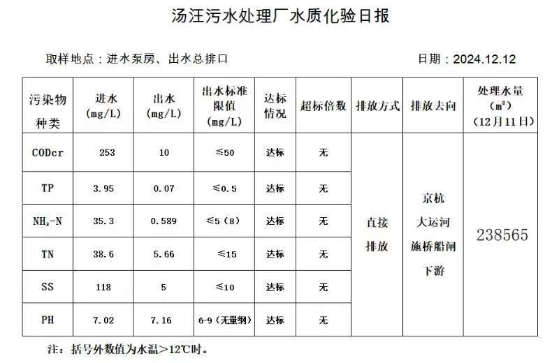 汤汪污水处理厂水质化验日报(2024.12.12)