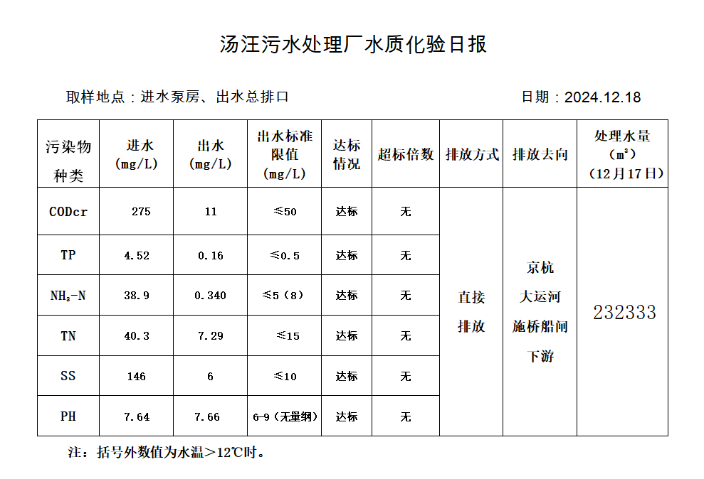 汤汪污水处理厂水质化验日报(2024.12.18)