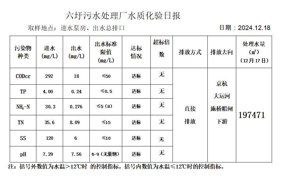 六圩污水处理厂水质化验日报(2024.12.18)