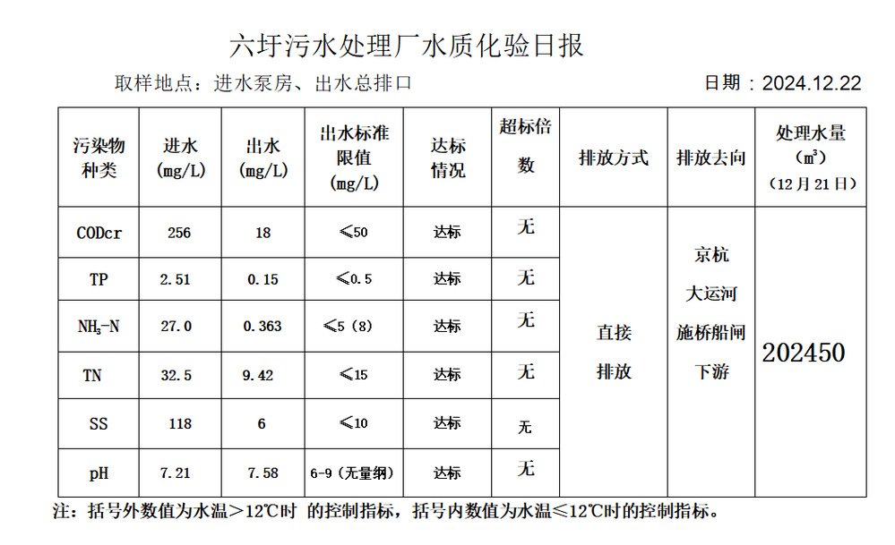 六圩污水处理厂水质化验日报(2024.12.22)