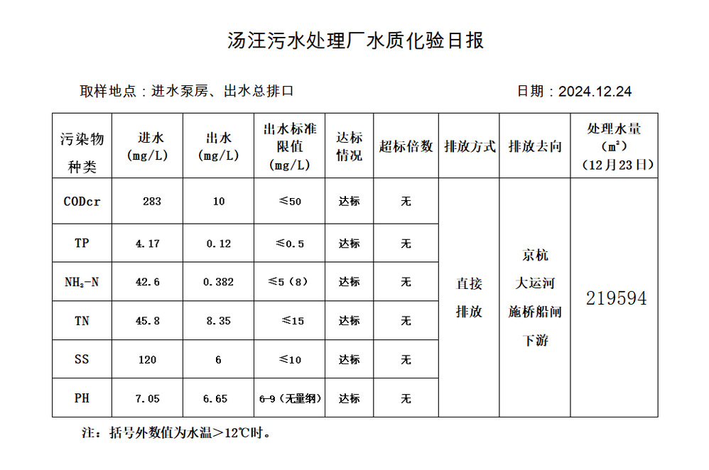 汤汪污水处理厂水质化验日报(2024.12.24)